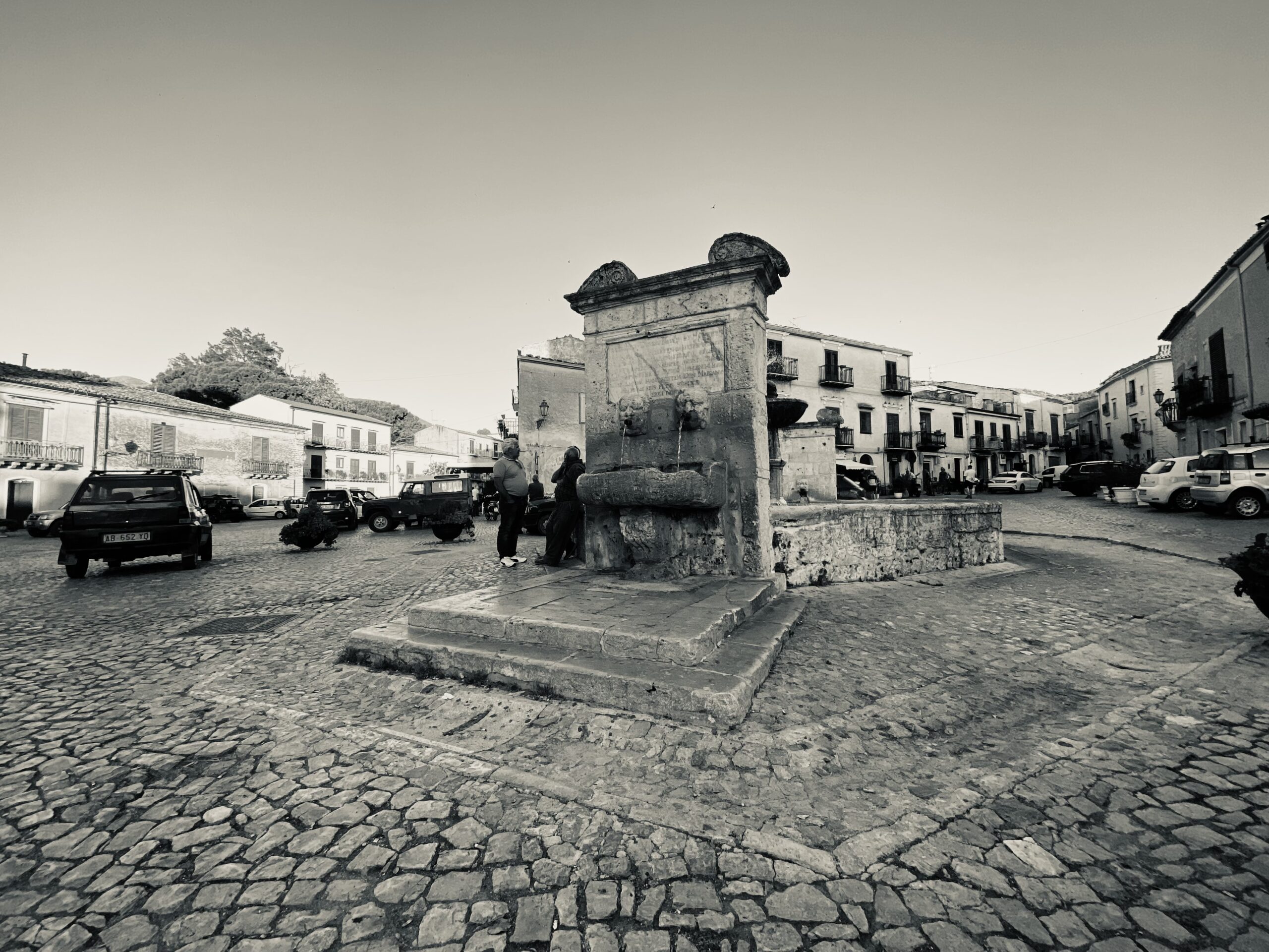 W centralnym punkcie Piazza Umberto I stoi zabytkowa fontanna ośmiokątna (Fontana ottagonale) wybudowana w 1608 roku. Została wzniesiona na początku XVII wieku, aby służyć mieszkańcom jako główne źródło wody. To przykład baroku sycylijskiego w wydaniu użytkowym. Wykonano ją z lokalnego kamienia. Jej ośmiokątny kształt nie jest przypadkowy – w architekturze często nawiązuje on do odrodzenia i równowagi. Na jej bokach można dostrzec rzeźbione maski (mascheroni), z których wypływa woda.