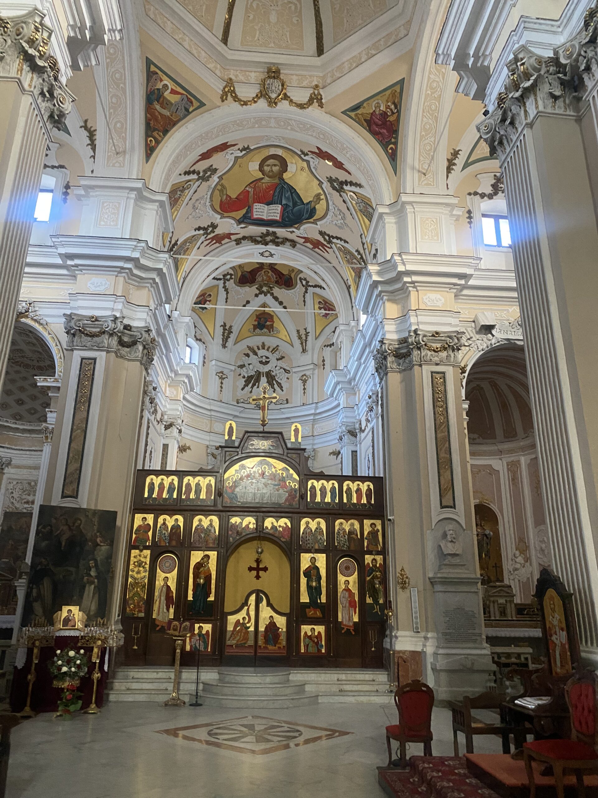 Tak jak pisałem na początku postu Palazzo Adriano to fascynująca enklawa kultury Arbereszy, potomków Albańczyków, którzy uciekli przed Turkami w XV wieku. Choć język przodków z czasem zanikł, to tożsamość miasteczka wciąż definiuje obrządek grecko-bizantyjski, widoczny w tutejszych świątyniach.