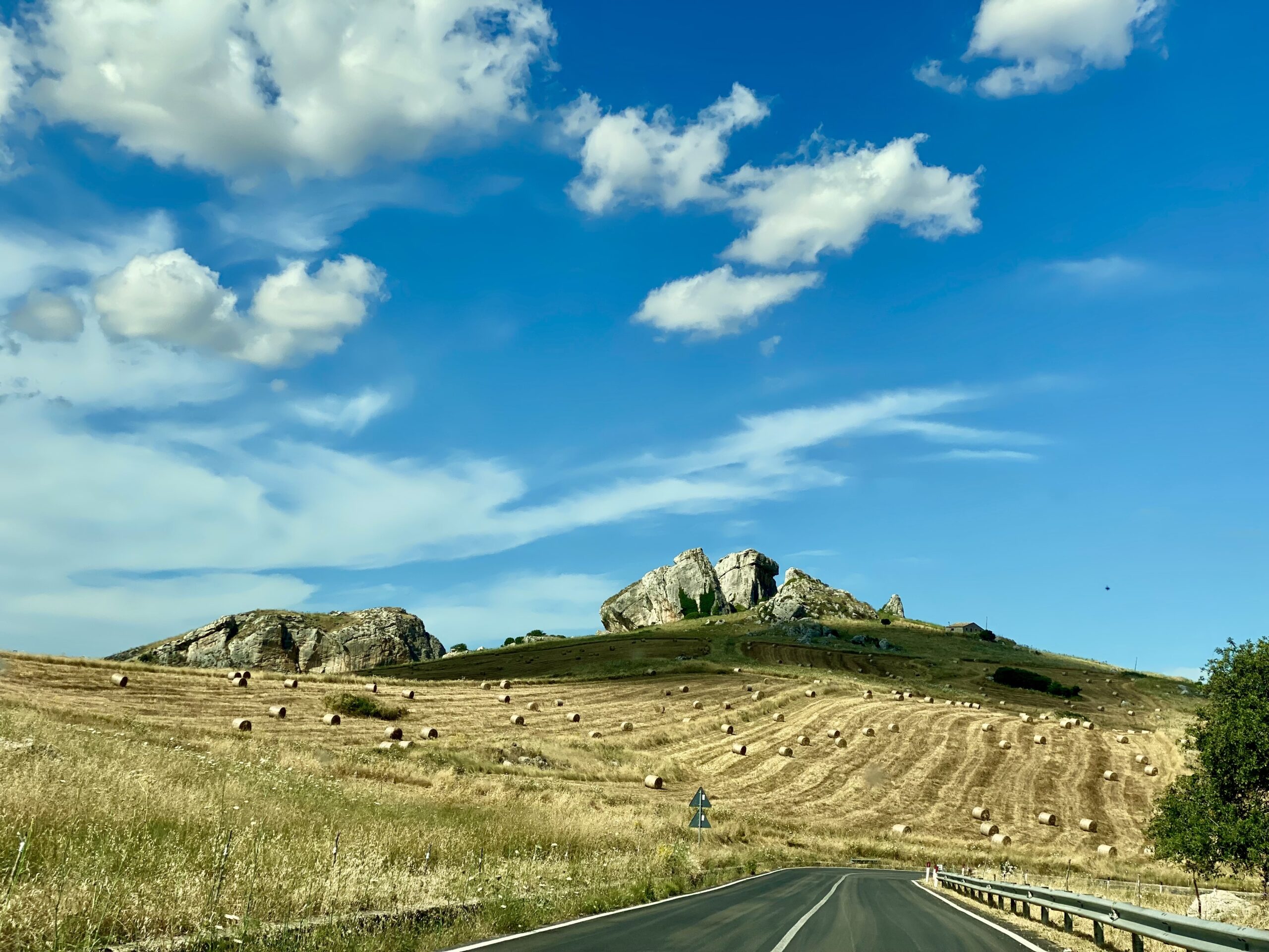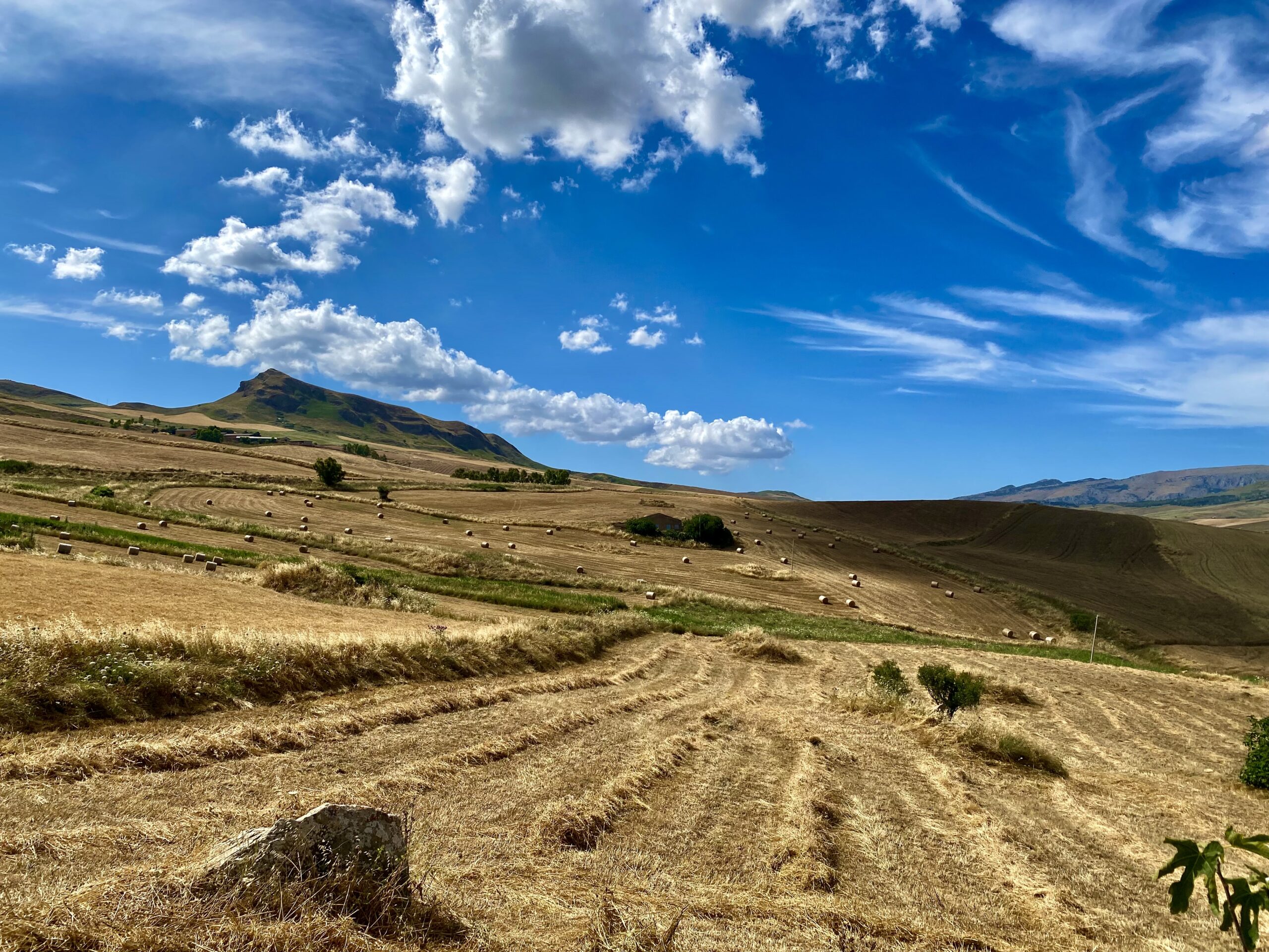 Wyruszyliśmy wcześnie rano z Palermo aby przeżyć cały dzień w Palazzo Adriano. Sama droga dojazdowa już po wyjechaniu z Palermo była niezwykłą przygodą. Wybraliśmy trasę, która przebiegała przez słynne miasteczko Corleone. Jechaliśmy wśród złocistych pól, palące słońce, kompletna cisza i ani żywej duszy dookoła. Tylko gdzieniegdzie stały stare, opuszczone kamienne domki, a złociste pola pięknie odcinały się na tle intensywnie błękitnego nieba.