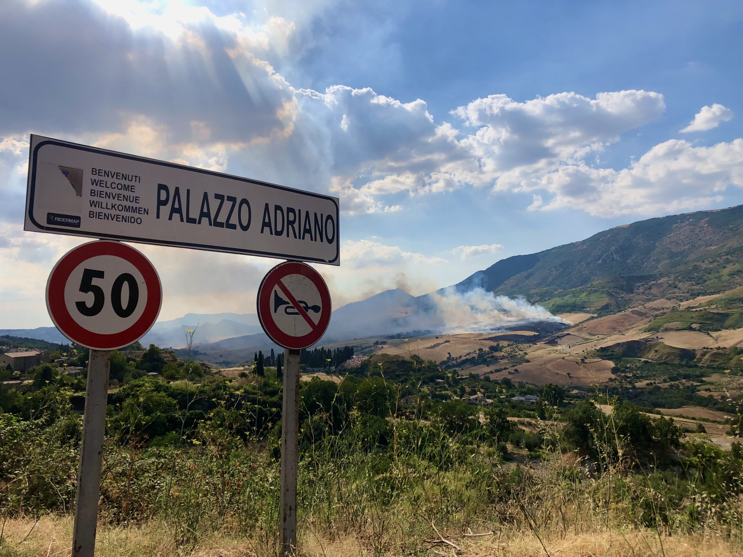 Niestety z powodu pożaru w okolicach Corleone, byliśmy zmuszeni dojechać do Palazzo Adriano wyznaczonym objazdem. Droga w niektórych miejscach była bardzo zniszczona, wyglądała jak po trzęsieniu ziemi.