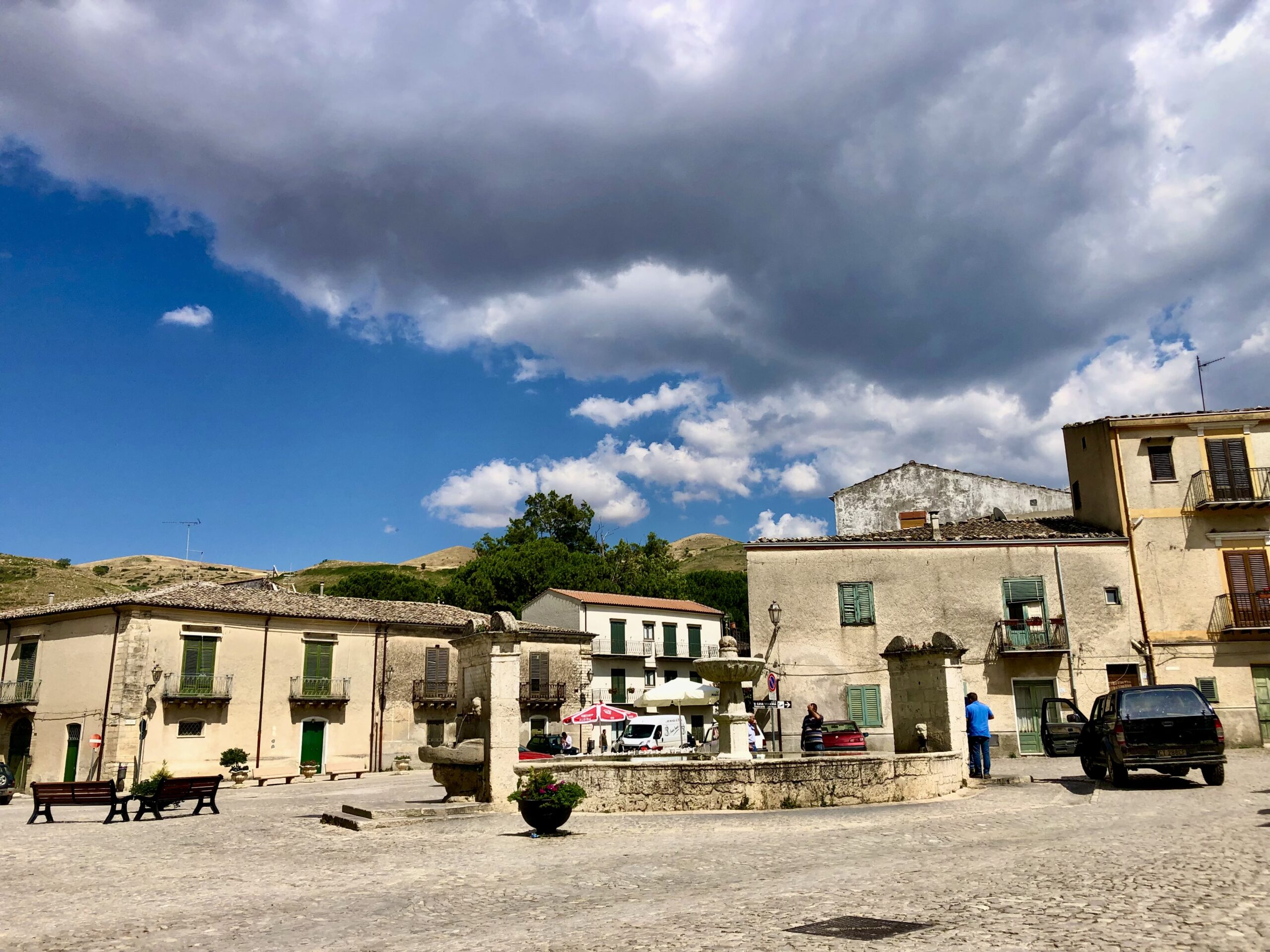 To główny plac malutkiego Palazzo Adriano, w tym miejscu zaparkowaliśmy nasze auto bez najmniejszego problemu. Tak jak pisałem na początku postu, Palazzo Adriano liczy około 2 tyś. mieszkańców, większość ludzi się zna, a obecność turysty jest dla każdego ciekawostką dnia.