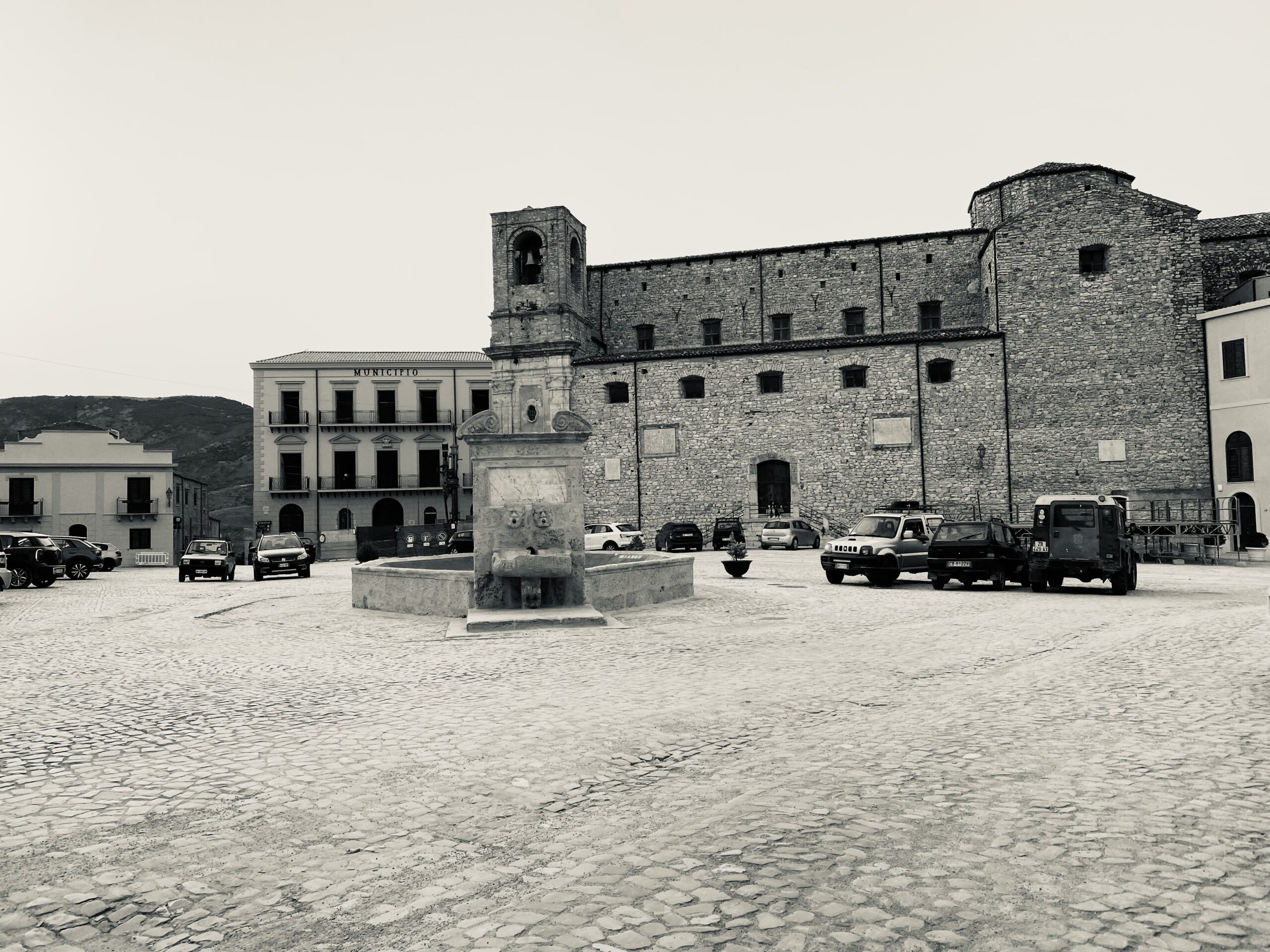 Warto również wspomnieć, że Palazzo Adriano zostało założone przez uchodźców z Albanii (Arberesze). Fontanna stoi dokładnie pomiędzy dwiema ważnymi świątyniami: